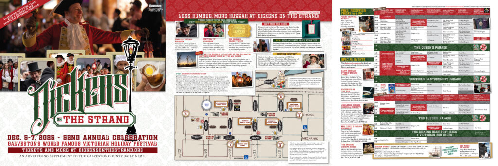PLEASE NOTE: Tickets are non-refundable. The festival is open, rain or shine. GHF is not responsible for independent transactions between visitors and vendors. We are committed to making Dickens on The Strand special needs accessible. If we can assist with arrangements, please contact us at 409-765-7834 before your visit.
