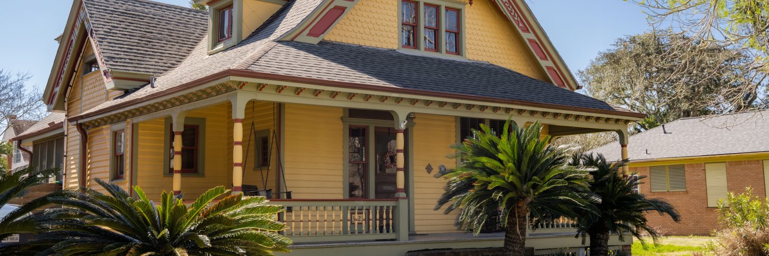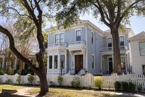 Carpenter Joseph Treaccar built this two-story side-hall townhouse in 1889 for use as his family’s residence. One of the most distinctive features is the double-gallery on the main facade trimmed with Queen Anne inspired sunburst brackets. Treaccar was a first generation Galvestonian born to Prussian immigrants who operated his own carpentry shop until 1924. During the 1900 Storm, Treaccar and his family sheltered on the second floor of the house. The downstairs floors bear evidence today of holes cut by Treaccar that allowed water to enter the house and anchor it down, preventing it from washing away.