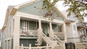 Trustees for St. John’s Methodist Church built this two-story Victorian house in 1899 for use as a parsonage. Pioneer Methodist minister Seth Ward resided there after the 1900 Storm when called to unite St. John’s and St. Paul’s Methodist churches as Central Methodist Church in 1901. Galveston realtor Zebulon Lewis White, and wife, Louise, purchased the property in 1911 and maintained ownership for the next six decades. Located in the Kempner Park neighborhood, the parsonage retains many original features including impressive interior woodwork and decorative trim.