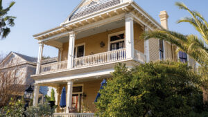 Owners of this two-story, fifteen-room bordello built in 1886 by madam Mollie Walters recently completed a full rehabilitation of the property. Featured as the Rehabilitation-in-Progress during the 2025 Historic Homes Tour, the house is one of the last remnants of Galveston’s infamous red-light district, once known as “The Line” during the island’s “Open City” days. Located in Galveston’s Central Business District, the Mollie Walters house is listed individually on the National Register of Historic Places (1984).