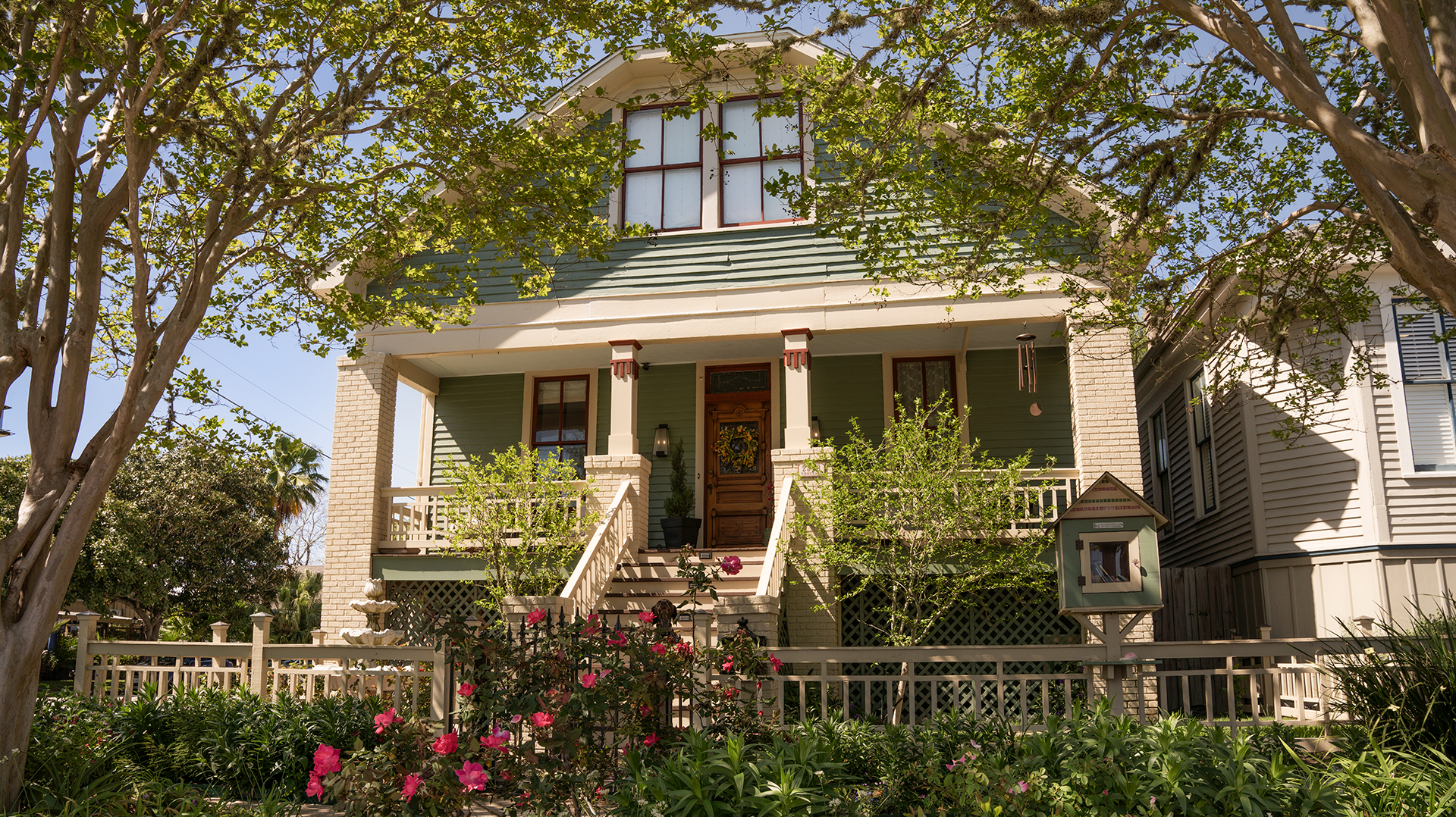 Irish immigrant Cornelius “Con” Whelton built this elevated one-story frame house in 1901. Whelton emigrated to the United States in 1897 via New York and by 1899, he resided in Galveston and worked as a screwman on Galveston’s cotton docks. When completed, Whelton used the house as rent property until he sold it in 1913 to his brother, Michael. He, and wife, Nellie, enlarged and remodeled the building with a Craftsman influence in 1938. The house is located in Kempner Park neighborhood near the western boundary of the Silk Stocking Historic District.