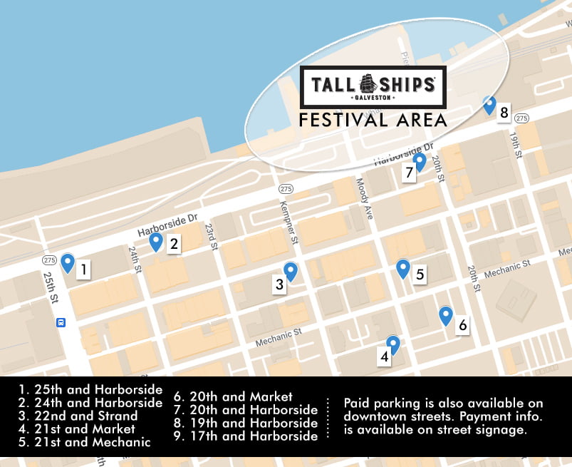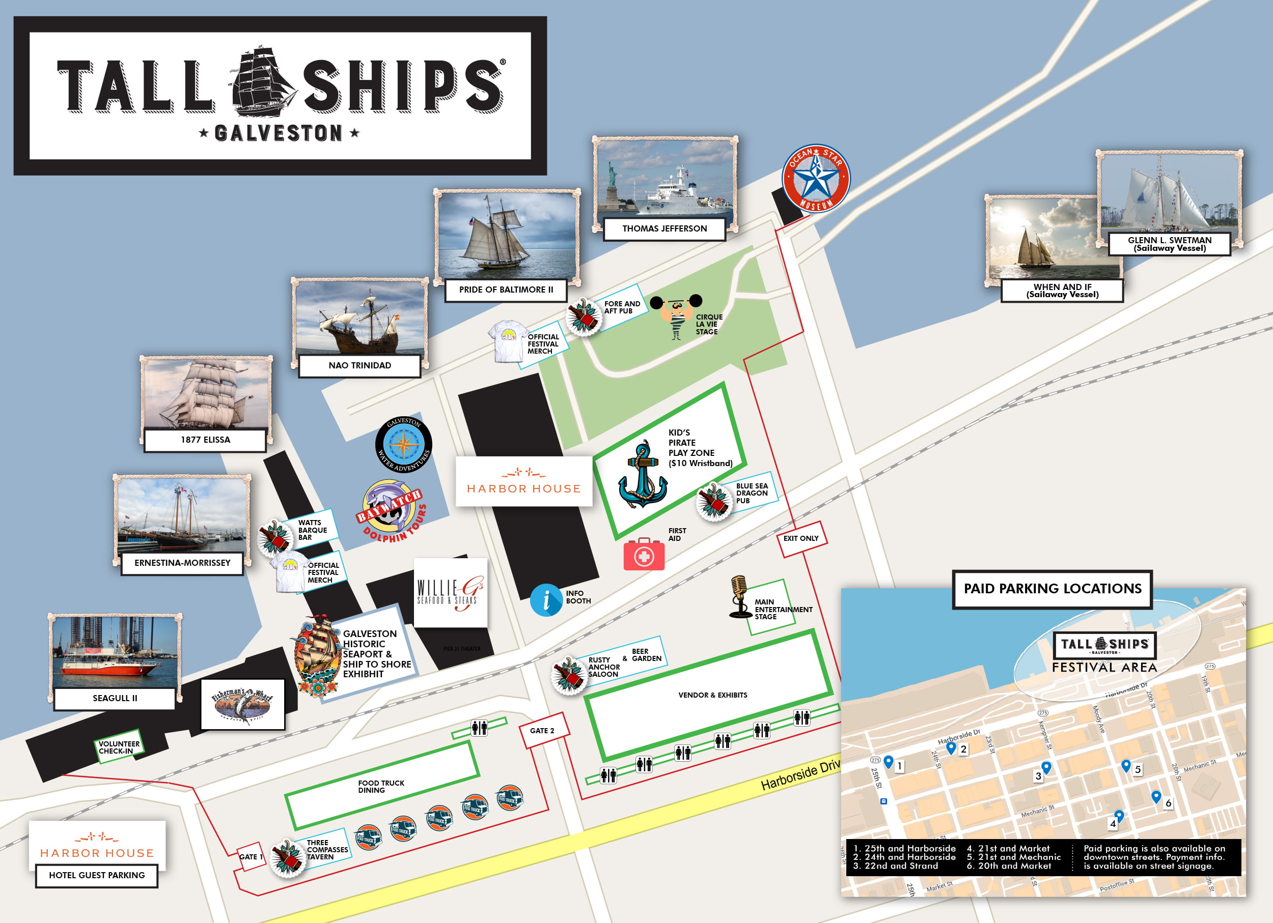 PLEASE NOTE: TALL SHIPS® GALVESTON tickets are non-refundable. The festival is open, rain or shine. GHF is not responsible for independent transactions between visitors and vendors. All ships are viewable from the pier. However, on-board tours are not handicap accessible. If we can assist with arrangements, please contact us at 409-765-7834 in advance of your visit.