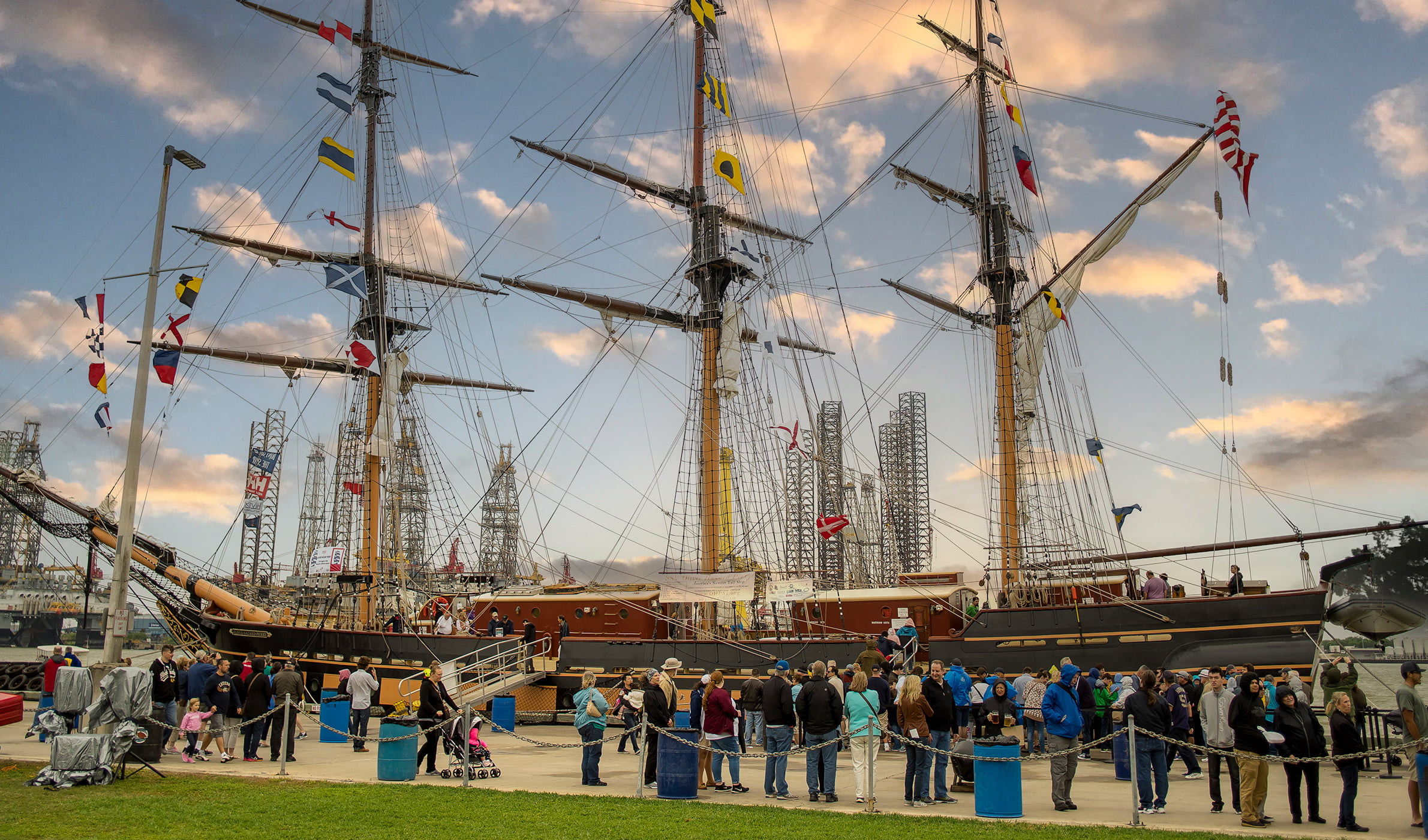 Toast the ending of the day and the beginning of the evening with tickets to our special Salute to Sunset party. Ticket holders will enjoy access to tour select tall ships after daytime tours conclude, complimentary craft beer, light hor d’oeuvres, and an unmatched portside setting.