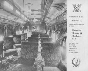 A railroad bridge crossing Galveston Bay was finished in 1860, and the Galveston Houston & Henderson Railroad (GH&H) company began service to the island. GH&H offered luxury parlor cars, transforming the travel experience and making a trip to Galveston all the more enticing.