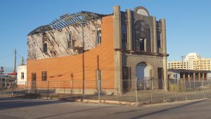 The building was designated as a Galveston City Landmark in 2007 and had been abandoned and in disrepair for several years prior to Galveston Historical Foundation acquiring the building in 2017. The building structure consisted of a wood structural frame with a brick veneer exterior and a composition roof. After several consultations with architects and engineers, it was decided that the safest treatment of this historic property would be reconstruction. The Secretary of the Interior’s Standards offers four distinct approaches to the treatment of historic properties. Reconstruction is one of these Standards. Reconstruction is defined as the act or process of depicting, by means of new construction, the form, features, and detailing of a non-surviving site, landscape, building, structure, or object for the purpose of replicating its appearance at a specific period of time and in its historic location. While reconstruction is not the preferred treatment in encouraging the preservation of our cultural and architectural history, the deterioration of the structure made it unsafe to attempt to save more of the structure.
