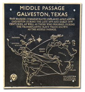 In 2017, Galveston Historical Foundation’s African American Heritage Committee worked with Ann Chinn, Director of the Middle Passage Port Marker Project, to include Galveston as a “Site of Memory” and recognized along with 30 other United States seaports as a UNESCO Middle Passage arrival location. The designation was received in December 2018. A marker to commemorate the enslaved Africans brought to Galveston during the 19th century can be viewed at the Galveston Historic Seaport Museum, located on Pier 22.
