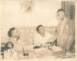 The Tip Top Café became a well-known restaurant and popular hangout but Murray wore many other hats. He used the café as a point of contact and was very active in the community through his support of multiple organizations that included the Galveston Negro Chamber of Commerce, the Gibson Branch of the YMCA, and other non-profit service organizations. At the café, Murray sold tickets to various events held in Galveston, including all Central High School sports events, fundraisers for local organizations, and city-wide events held at Galveston’s City Auditorium, located behind City Hall. The Tip Top was also a City of Galveston Poll Tax station, a prerequisite to vote or register to vote for a number of states until 1966. Implemented during the Jim Crow Era, the tax of $1-$1.50 was an expense most African Americans could not afford and was an attempt to keep African Americans from exercising their right to vote. Murray volunteered as a Galveston County Voter Registrar Deputy and several nights a week he was available until midnight to accept payments and register citizens so they would be eligible to vote. During World War II, Murray also provided free entertainment for the soldiers stationed at Camp Wallace in Galveston, Texas, and discounted their meals when they visited the café.