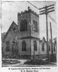 In 1901, the Rev. Walter Henry Marshall became the next priest in charge of St. Augustine. Under his leadership, the current sanctuary was constructed at a cost of $8,500 and was fully funded by the parishioners. It is speculated that famed Galveston architect, Nicolas Clayton, may have assisted with the design. During that time, Clayton was working with Grace Episcopal and St. Joseph’s German Catholic Church, which was across 22nd Street from St. Augustine’s.