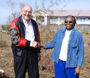 John Saracco and Alice GatsonIn 1957 Armstrong purchased the remaining shares of the cemetery. In the early 1980s, the Armstrong estate sold the land to John and Judy Saracco. The Saracco’s donated the cemetery to Galveston Historical Foundation (GHF) in 2006. Out of the 411 people buried at Rosewood, the exact number of burials remaining on the 1.255 acres is still unknown. Surveys conducted after GHF assumed ownership of the cemetery identified only twenty remaining grave markers.