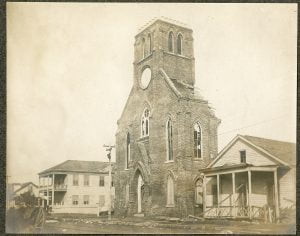 On September 8, 1900, disaster struck when the church and rectory were literally washed away, and all records destroyed by the hurricane known as the Great Storm. Father Cain and his wife lost their lives, along with thousands of Galvestonians. After the storm, the surviving members of St. Augustine’s congregation held their services at Eaton Memorial Chapel at Trinity Church, through the courtesy of its rector, the Rev. Dr. Stephen M. Bird.