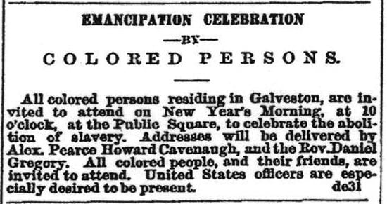 One of the first emancipation celebrations held in Galveston and occurred on January