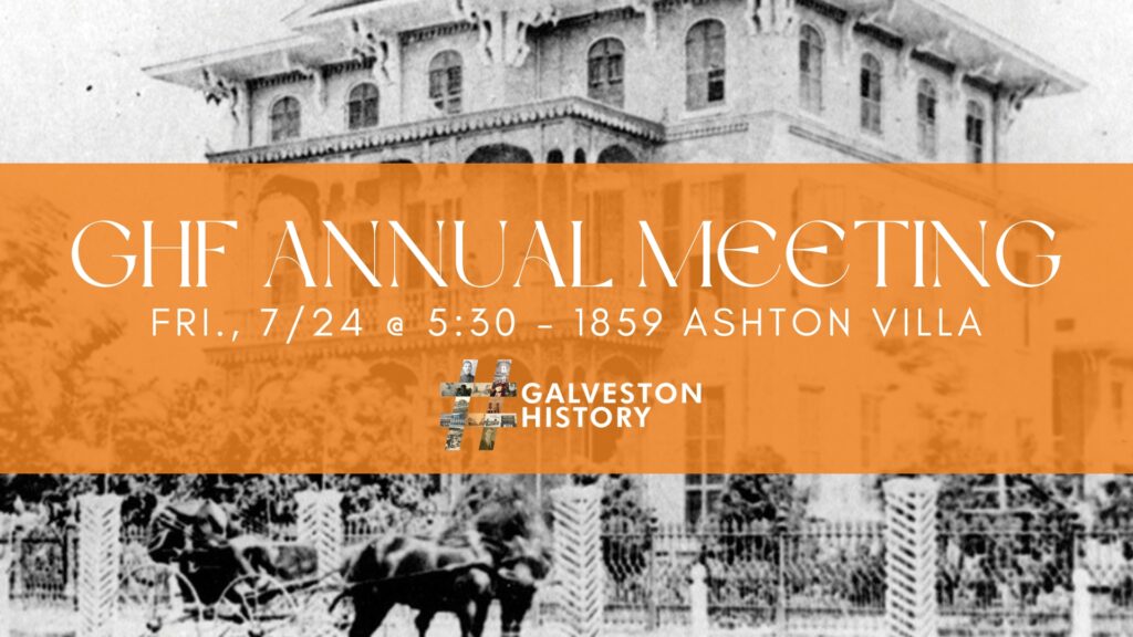 Galveston Historical Foundation (GHF)’s Executive Director Dwayne Jones and outgoing president Clay Rogers will lead the 2026 GHF annual meeting on Friday, July 24 at 5:30 p.m. The event is held at the 1859 Ashton Villa, 2328 Broadway, and will include complimentary beverages and gourmet hor d’oeuvres.