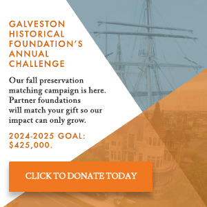 Galveston Historical Foundation (GHF) was formed as the Galveston Historical Society in 1871 and merged with a new organization formed in 1954 as a non-profit entity devoted to historic preservation and history in Galveston County. Over the last seventy years, GHF has expanded its mission to encompass community redevelopment, historic preservation advocacy, maritime preservation, museum development, and heritage tourism. GHF embraces a broader vision of history and architecture that encompasses advancements in environmental and natural sciences and their intersection with historic buildings and coastal life, and continues to lead on local, state, and national levels with research-driven programs that build awareness of preservation’s role in cultural identity and stewardship across generations.