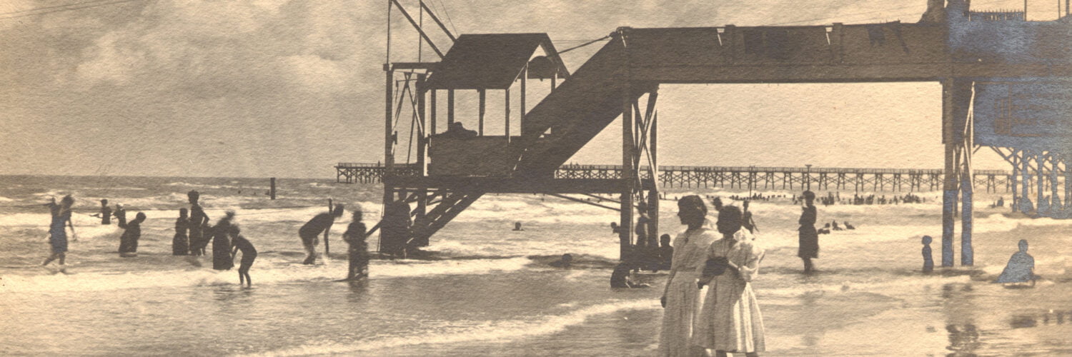 Over the last two centuries in Galveston, as the world gained more leisure time and sought new ways to spend it, the beach’s inherent push and pull between thrill-seeking and relaxation produced a rich ecosystem of complementary attractions: seawall ferris wheels and dance floors with Gulf views, 19th-century skinny dipping and 20th-century motor courts, architectural marvels and maritime wonders, brightly lit casinos and quiet, wild marshes. Beginning in the mid-to-late 1800s, as Galveston began to promote itself more as a sophisticated vacation destination than a bustling center of commerce, a new nickname emerged for the prestigious port city: The Playground of the Southwest.