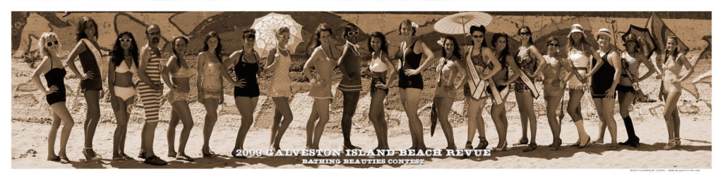 The world famous Bathing Beauties take their place on the historic Galveston Seawall for the 2009 panoramic! Continuing a tradition started in the early 1900s, this year’s photo was taken by Creative Ammo and is the official print of the Galveston Island Beach Revue.