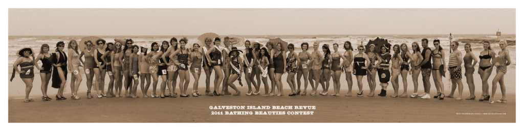 The world famous Bathing Beauties take their place on the historic Galveston Seawall for the 2011 panoramic! Continuing a tradition started in the early 1900s, this year’s photo was taken by Creative Ammo and is the official print of the Galveston Island Beach Revue.