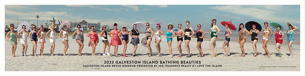 The world-famous Bathing Beauties take their place on the historic Galveston Seawall for 2023 panoramic! Continuing a tradition started in the early 1900s, Koby Brown Photography took this year’s photo, which is the official print of the 2023 Galveston Island Beach Revue.
