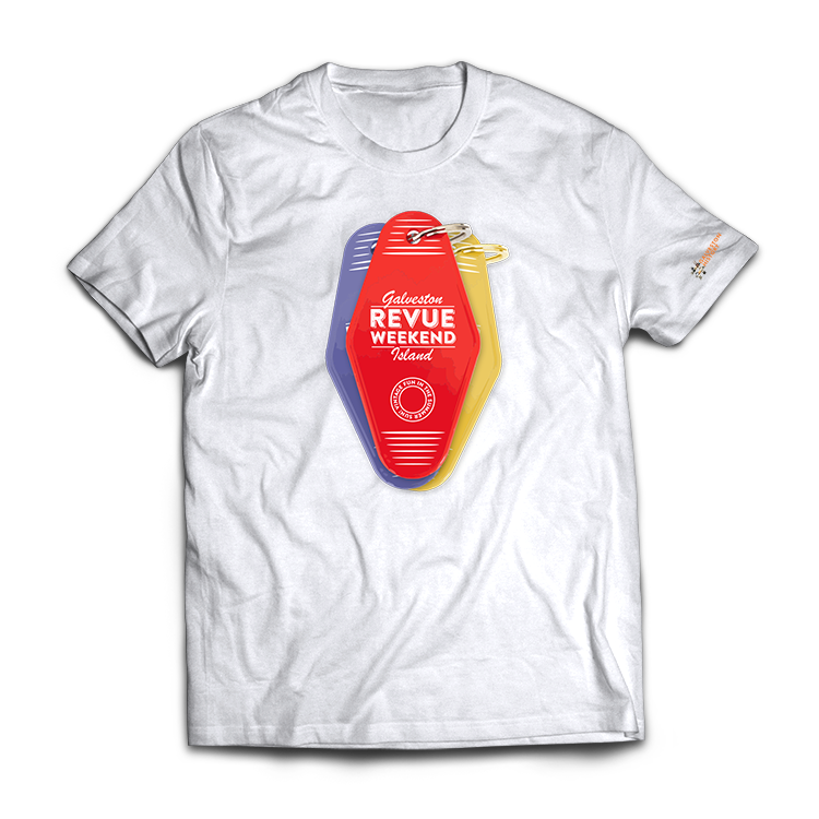 100% Cotton Tee Shirt featuring our Galveston Revue Weekend design.