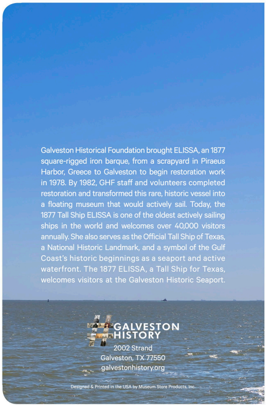 A 4¼ X 6½” pocket notebook with 48 unlined pages featuring a beautiful image of our Tall Ship Elissa in action.