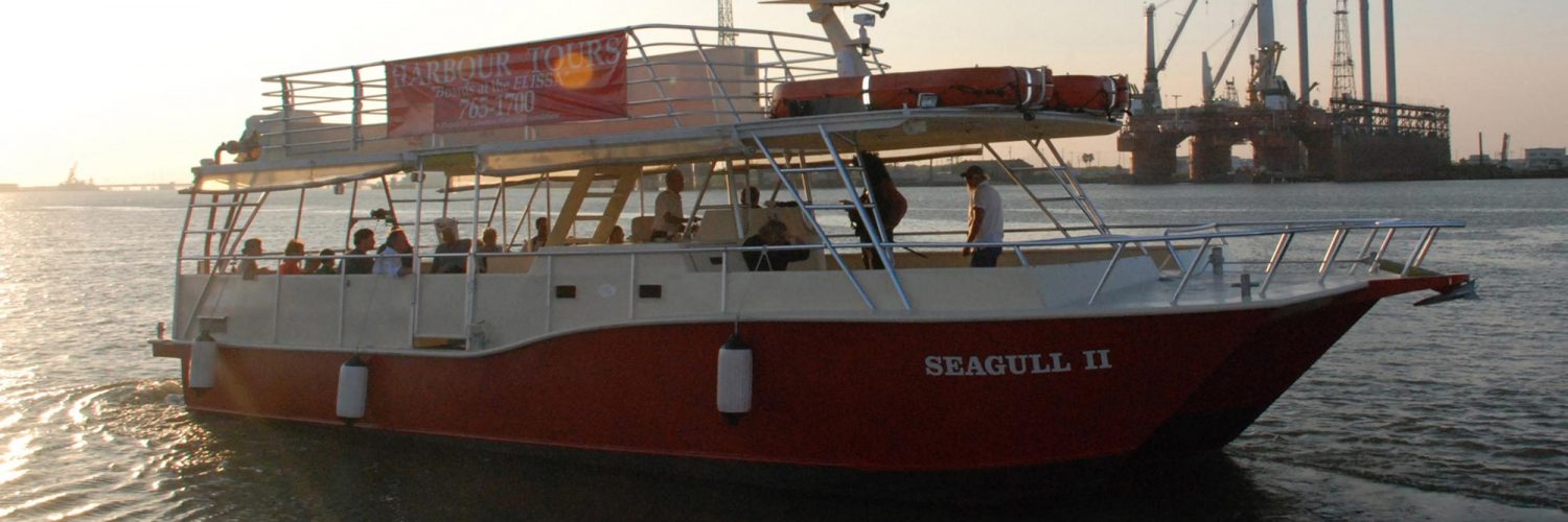 PRIVATE CHARTERS | Seagull II makes an excellent and unusual venue for birthday parties, office get-togethers, receptions, convention features, and more. The ever-changing scenery of the busy harbor, the excitement of a dolphin sighting, and a restful sunset over an island occupied only by birds combine to make your event one to remember. For reservation information, call us at 409-765-3432.
